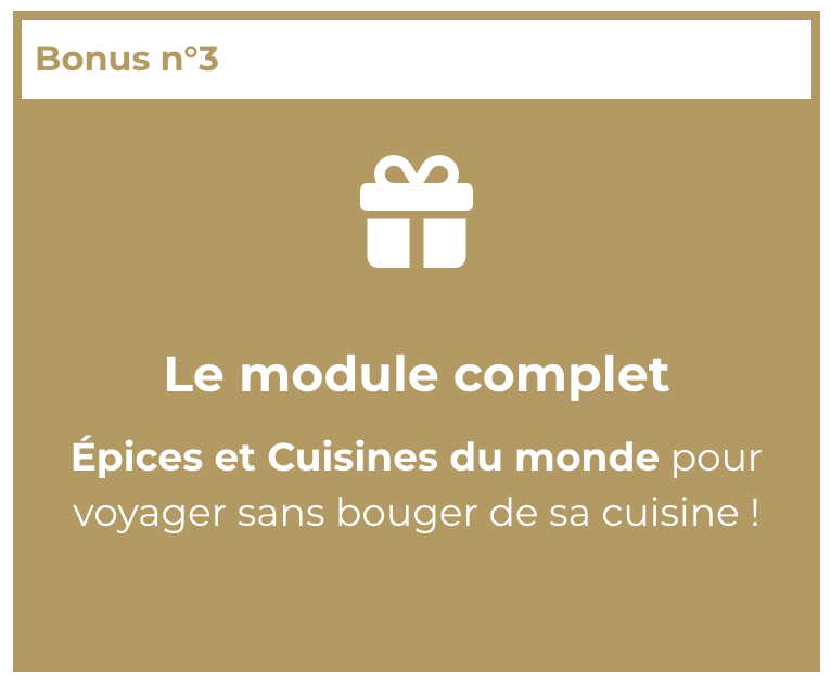 Merci pour cette formation qui nous apporte les bases essentielles de la crusine et qui nous permet de devenir une experte en la matière grâce à l’expérimentation accompagnée 🙏💚🙏" Anne-Sophie (2023)